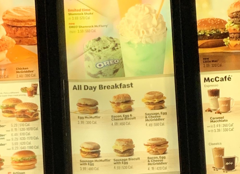 The highlight of their lunch offerings includes the Quarter Pounder with Cheese Meal (840-1080 Cal.) and the fan-favorite McCrispy (470 Cal.), which promises crispy satisfaction in every bite. Combo meals cater to all cravings, while seasonal specials, like the Shamrock Shake, add a festive touch.